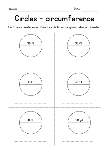 Radius & Diameter Worksheets, Circumference & Area Worksheets Circumference of a Circle 1 FREE The diameter of each circle is shown. Students must calculate the circumference, or the distance around the circle. 6th through 8th Grades View PDF Circumference of a Circle 2 The radius of each circle is drawn. Pupils must figure out the distance around the edge of the circle, or circumference.